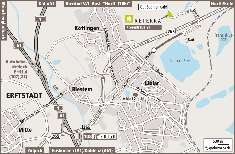 Anfahrtsplan erstellen Karte Erftstadt (Reterra) / Anfahrtsskizze erstellen / Anfahrtskarte erstellen / Lageplan erstellen / Wegbeschreibung erstellen