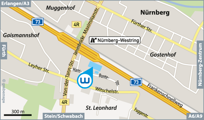Karte Nürnberg / Anfahrtsskizze erstellen / Anfahrtskarte erstellen / Lageplan erstellen / Wegbeschreibung erstellen