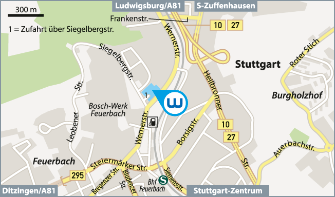 Karte Stuttgart / Anfahrtsskizze erstellen / Anfahrtskarte erstellen / Lageplan erstellen / Wegbeschreibung erstellen