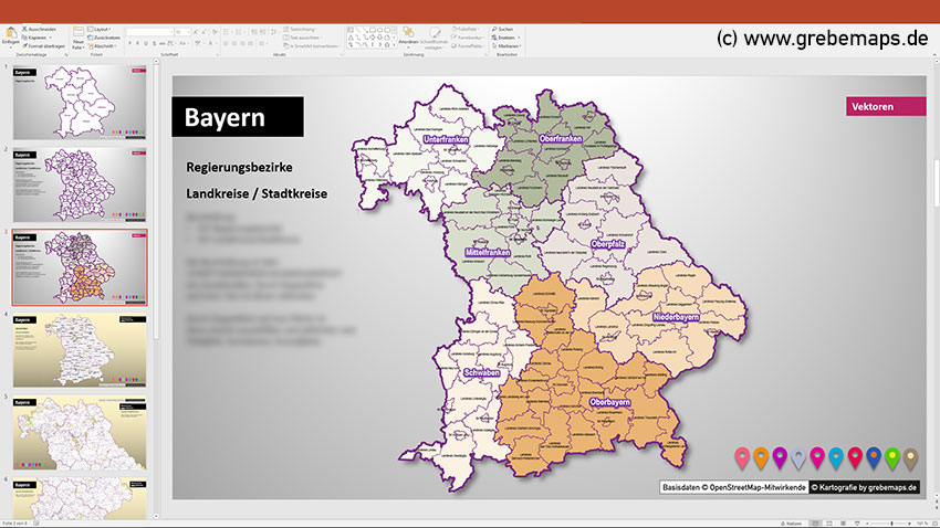 PowerPoint-Karte Bayern Landkreise und Gemeinden, Karte Landkreise und Stadtkreise Bayern, Karte Gemeinden Bayern