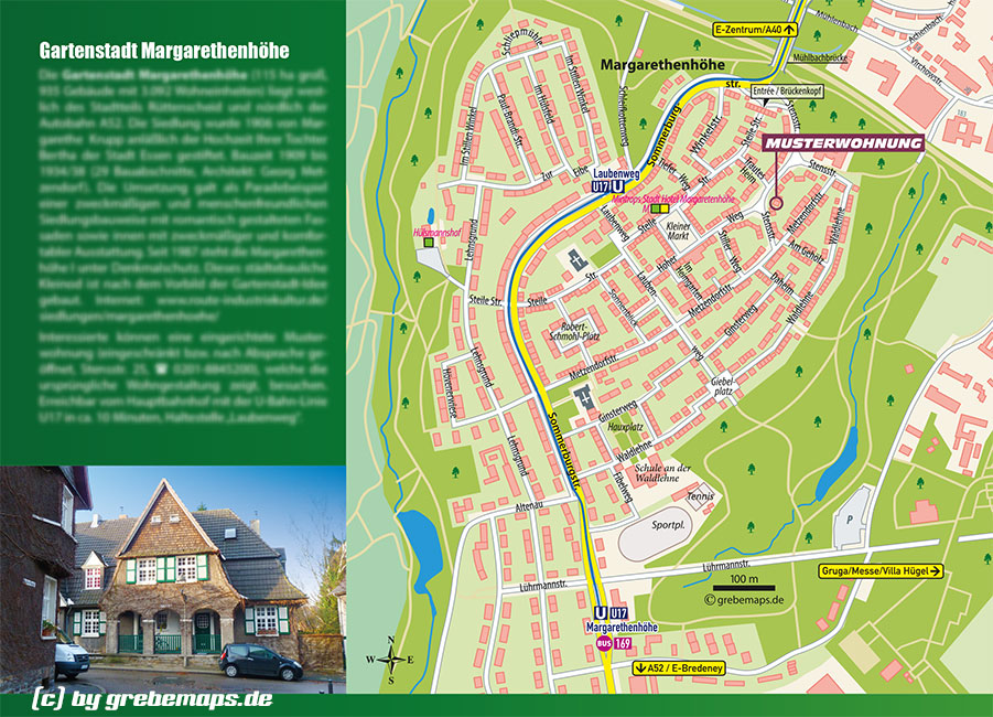 Touristische Karte Gartenstadt Margarethenhöhe Essen, TouristMap, touristische Karte, Karte für Tourismus, Tourismuskarte