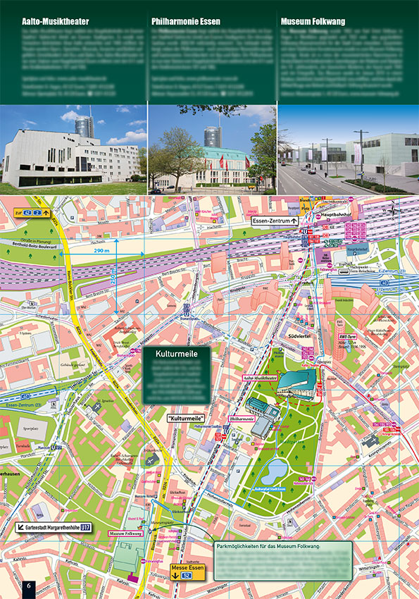 touristische Karte Kulturmeile Essen mit Museum Folkwang, Aalto-Theater, Philharmonie Essen, Ortsplan erstellen