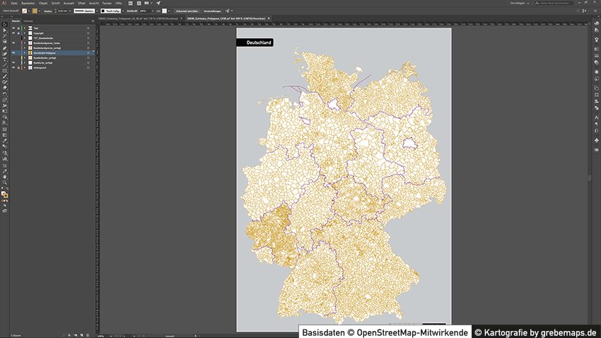 Neue Vektorkarte für Illustrator: Karte Gemeinden Deutschland Vektor