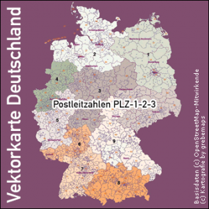 Vektorkarte Deutschland Postleitzahlen PLZ-1-2-3 1-2-3-stellig, Karte Deutschland PLZ 1-2-3