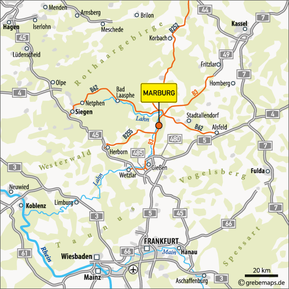 Karte Marburg Übersicht / Anfahrtsskizze erstellen / Anfahrtskarte erstellen / Lageplan erstellen / Wegbeschreibung erstellen