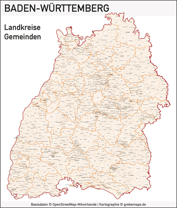 Baden-Württemberg Vektorkarte Landkreise Gemeinden PLZ-5, Karte Baden-Württemberg, PLZ-Karte Baden-Württemberg, Karte Gemeinden Baden-Württemberg, Karte Landkreise Baden-Württemberg, Landkarte Baden-Württemberg, Karte Vektor Baden-Württemberg