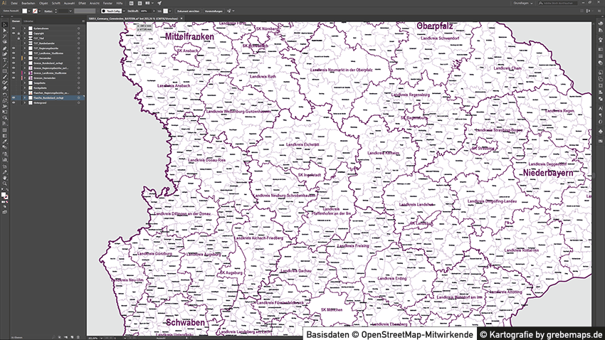 Bundesland-Karten, Vektorkarten für Illustrator Schlüsselworte: Bayern, Bayern Vektorkarte Landkreise, Bundesland, Gemeinden, Karte Bayern Landkreise, Karte Landkreise Bayern Vektor, Landkreise, Landkreise Bayern Karte Vektor, Landkreiskarte Bayern, Vektorkarte Bayern, Gemeinde-Karte Bayern, Bayern Landkreise, Bayern Gemeinden, Karte Bayern Gemeinden