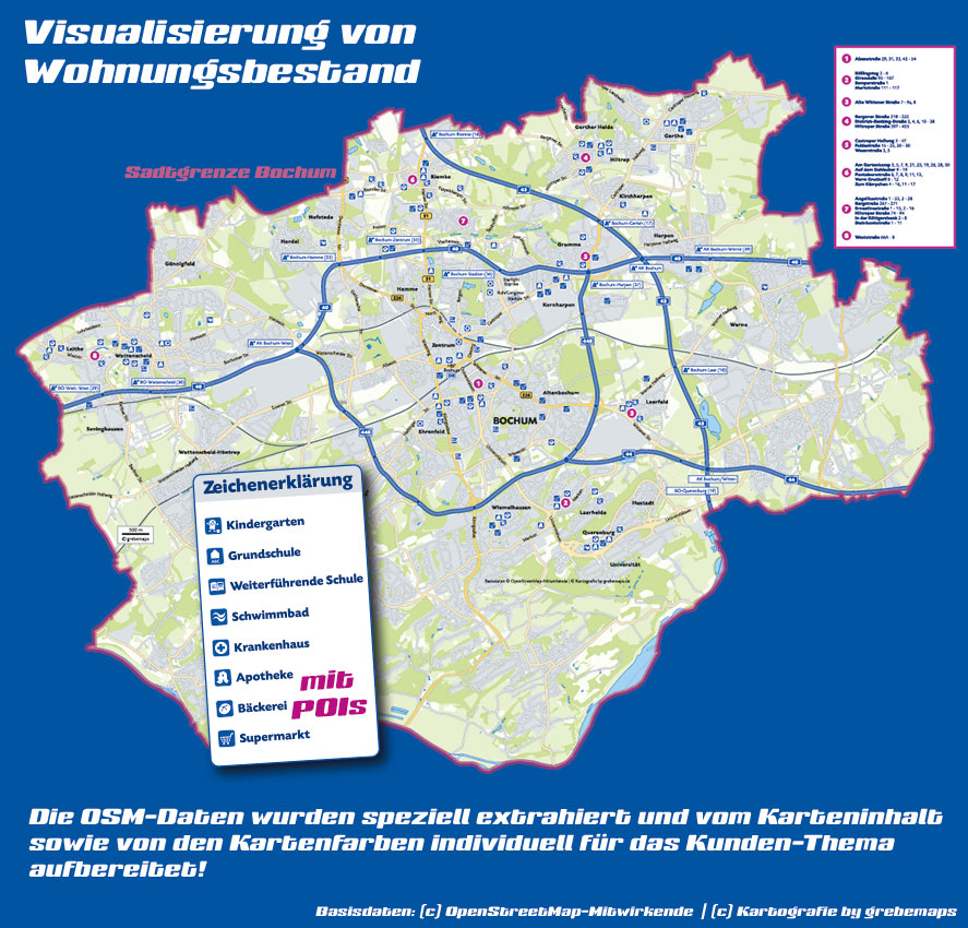 Karte aus OpenStreetMap-Daten, Wohnungsbestandskarte, Karte für Immobilien, OpenStreetMap Karte erstellen