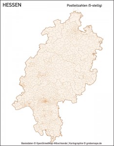 Hessen Vektorkarte Landkreise Gemeinden PLZ-5, Karte Gemeinden Hessen, Karte Landkreise Hessen, Postleitzahlenkarte Hessen, Karte Hessen PLZ, Vektorkarte Hessen