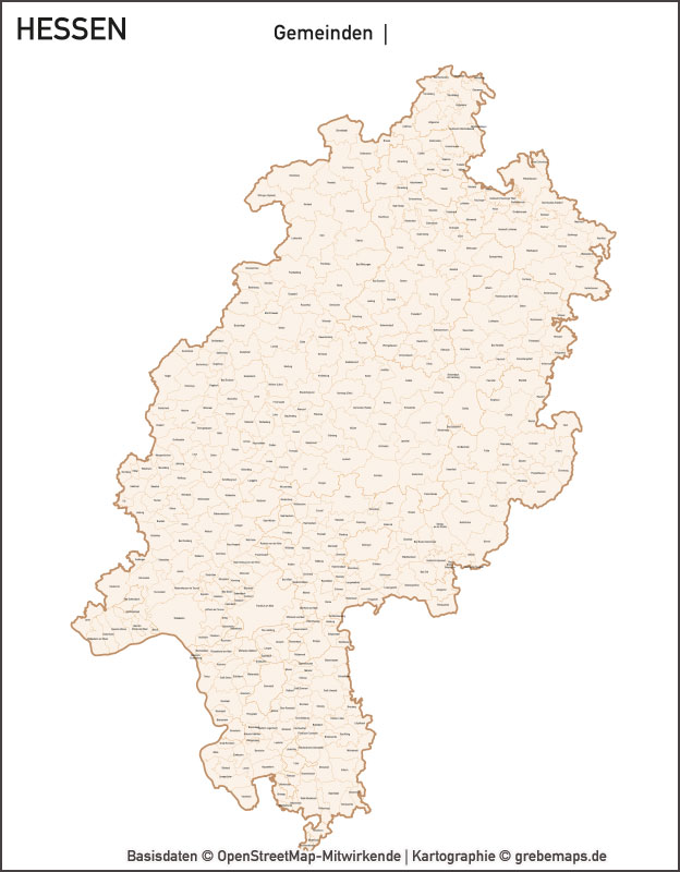 Hessen Vektorkarte Landkreise Gemeinden PLZ-5, Karte Gemeinden Hessen, Karte Landkreise Hessen, Postleitzahlenkarte Hessen, Karte Hessen PLZ, Vektorkarte Hessen