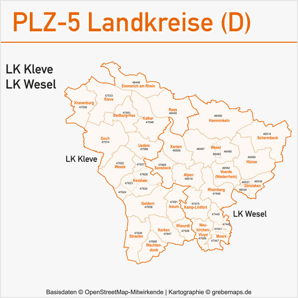 Wir erstellen Ihnen u.a. aus kostenlosen und lizenzfreien OpenStreetMap-Daten Postleitzahlenkarten. Profitieren Sie von unserer Erfahrung in kartographischer Aufbereitung (Modellierung, Generalisierung, Symbolisierung, Signaturierung, Schriftplatzierung) von OpenStreetMap-Daten. Wir erstellen bei Bedarf zudem auch das sonstige Layout und geben die Daten in den Druck.