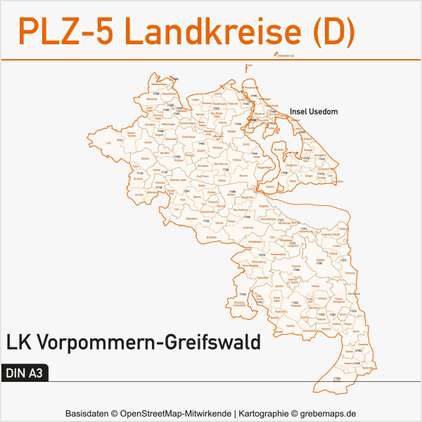 Weitere Informationen zur Karte „Karte Landkreise Vorpommern-Rügen Gemeinden Postleitzahlen“ finden Sie auf www.kartendesign.de. Hier können Sie zur zahlreichen Großstädten und Städten in Deutschland entsprechende Basiskarten erwerben.
