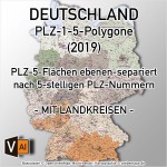 Karte Postleitzahlen Deutschland 5-stellig mit Landkreisen, PLZ-Karte Deutschland mit Landkreisen, Karte PLZ 5-stellig Deutschland mit Landkreisen, Karte PLZ-5 Deutschland