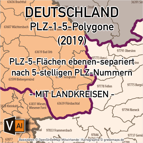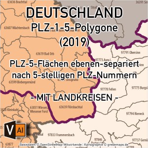Karte Postleitzahlen Deutschland 5-stellig mit Landkreisen, PLZ-Karte Deutschland mit Landkreisen, Karte PLZ 5-stellig Deutschland mit Landkreisen, Karte PLZ-5 Deutschland