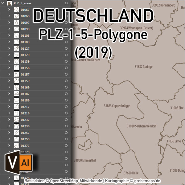 Karte Postleitzahlen Deutschland 5-stellig, PLZ-Karte Deutschland, Karte PLZ 5-stellig Deutschland, Karte PLZ-5 Deutschland