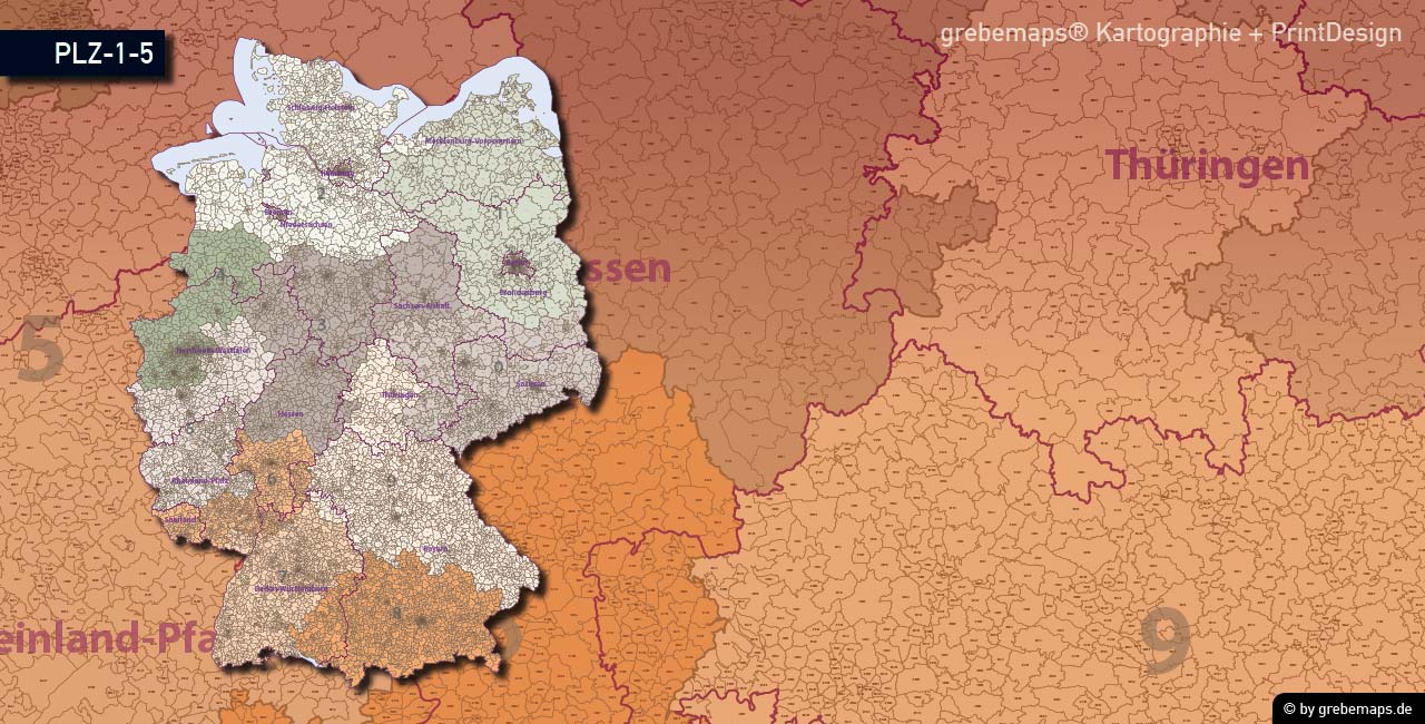 Karte Postleitzahlen Deutschland 5-stellig, PLZ-Karte Deutschland, Karte PLZ 5-stellig Deutschland, Karte PLZ-5 Deutschland