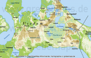 Karte Usedom Vektorkarte Basiskarte, Landkarte Usedom, Inselkarte Usedom, Vektorkarte Usedom
