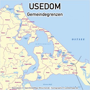 Karte Usedom Vektorkarte Basiskarte, Landkarte Usedom, Inselkarte Usedom, Vektorkarte Usedom