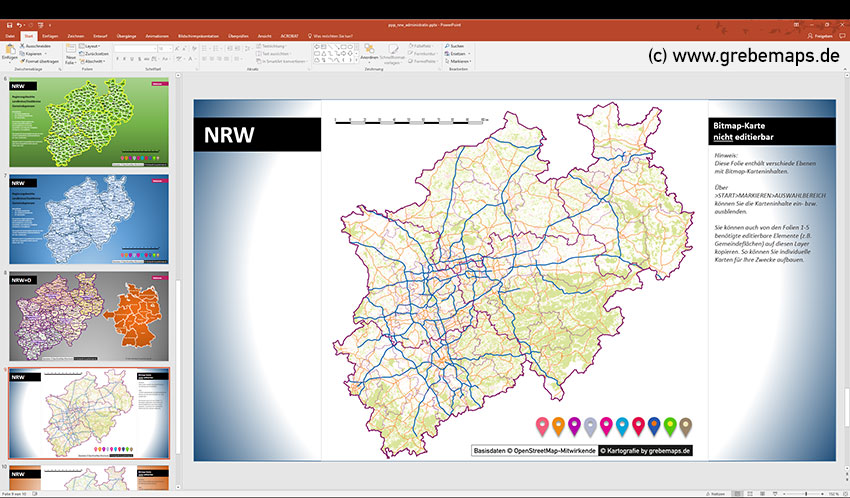 Karte NRW Vektor PowerPoint mit Gemeinden, Landkreisen, Stadtkreisen, Regierungsbezirken, NRW, Karte Nordrhein-Westfalen, PowerPoint
