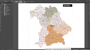 Landkarte Bayern Gemeinden und Landkreise / Stadtkreise, Karte Bayern Landkreise, Karte Bayern Gemeinden, Vektorkarte Bayern Gemeinden, Karte Vektor Bayern für Illustrator, Gemeindenkarte, Landkreiskarte Bayern