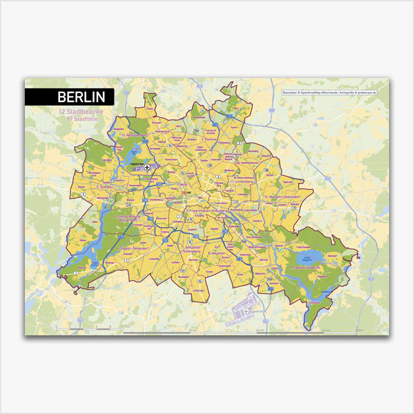 Karte Berlin Stadtplan Stadtbezirke Stadtteile Topographie Vektorkarte Berlin