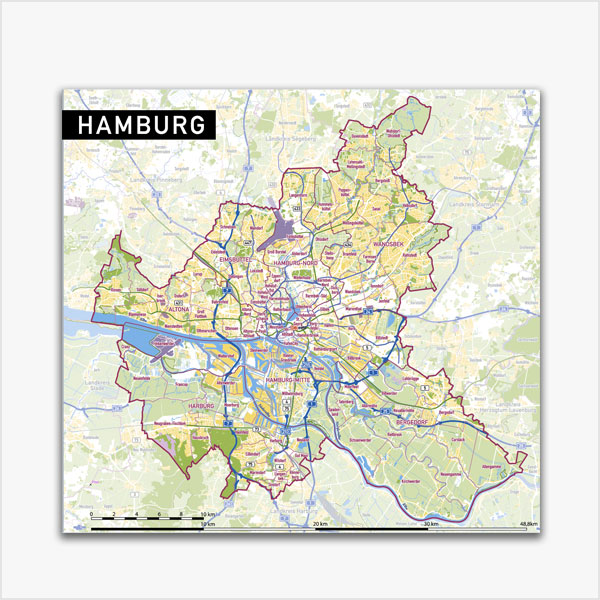 Karte Hamburg Stadtplan Stadtbezirke Stadtteile Topographie Vektorkarte Hamburg