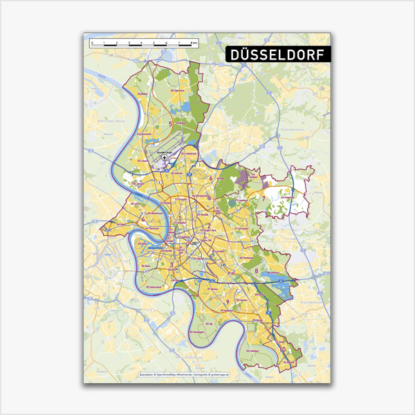 Karte Düsseldorf Stadtplan Stadtbezirke Stadtteile Topographie Vektorkarte Düsseldorf