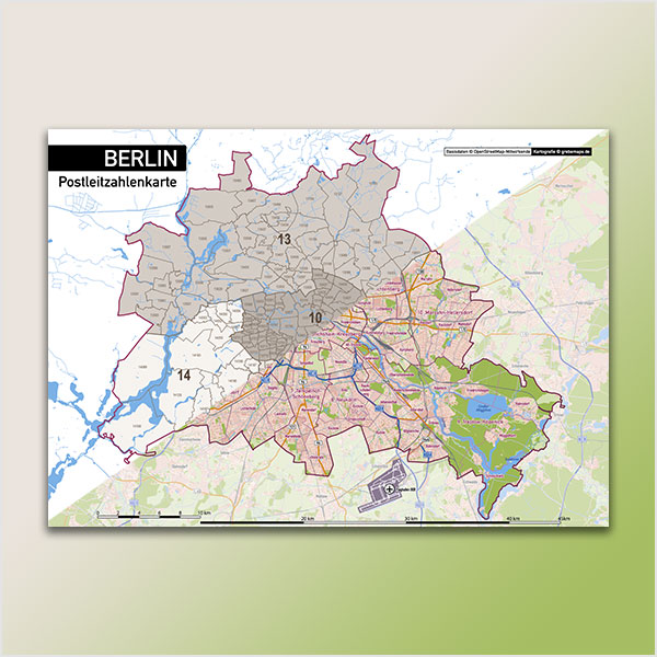 Karte Berlin Stadtplan Postleitzahlen 5-stellig PLZ-5 Topographie Stadtbezirke Stadtteile Vektorkarte Berlin