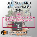 Deutschland Postleitzahlenkarte PLZ-1-2-5 mit Landkreisen Bundesländern Ortsnamen Vektorkarte (2020)