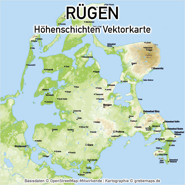 Karte Rügen Höhenschichten, Vektorkarte Rügen Höhenschichten