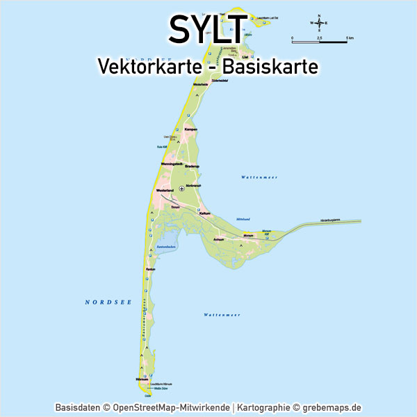 Karte Sylt Basiskarte Vektor Übersichtskarte Inselkarte Topographie