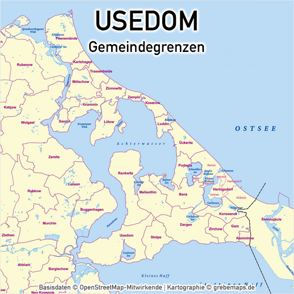 Karte Usedom Gemeindegrenzen Gemeinden Inselkarte Vektorkarte