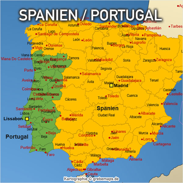 PowerPoint-Karte Spanien Portugal mit Provinzen Karte Spanien Karte Portugal Provinzen PowerPoint