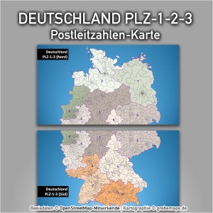 PowerPoint-Karte Deutschland Postleitzahlen PLZ-1-2-3 (1-stellig, 2-stellig, 3-stellig) Karte Postleitzahlen Postleitzahlenkarte PowerPoint