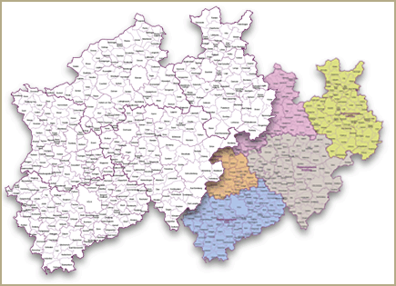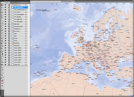 Basiskarten für Thematische Karten: Erstellung von speziellen zweckbezogenen Basiskarten als Grundlage für thematische Karte, z.B. städtische Übersichtskarten, Gemeinde- oder Kreiskarten. Auf diesen Basiskarten wird das Thema platziert.