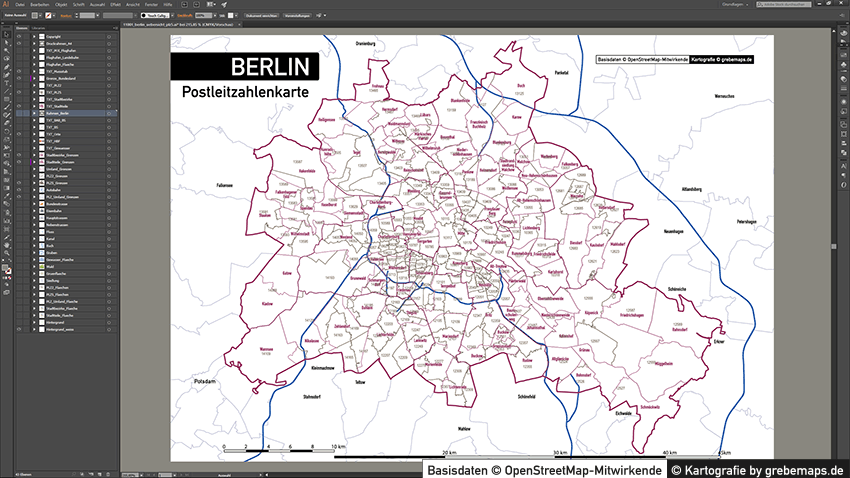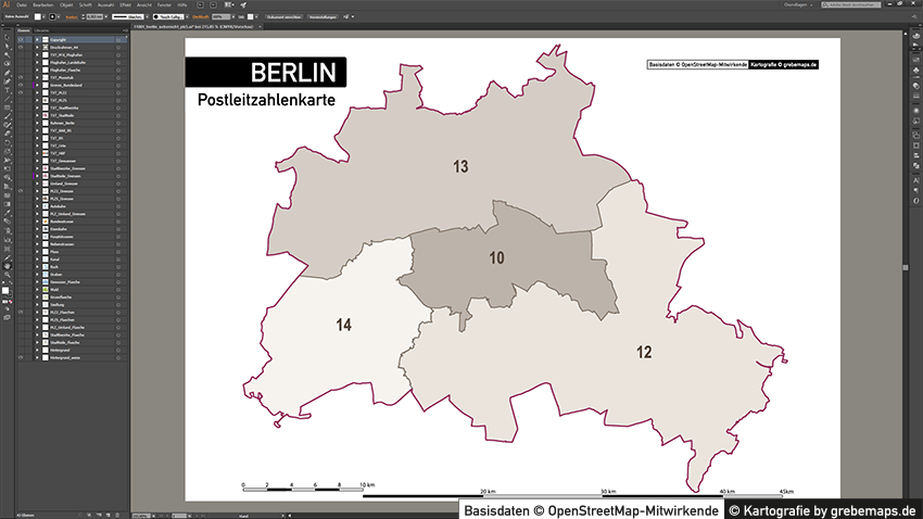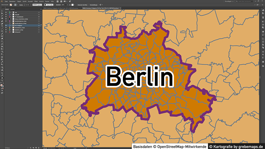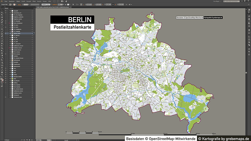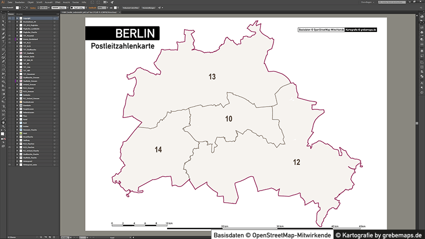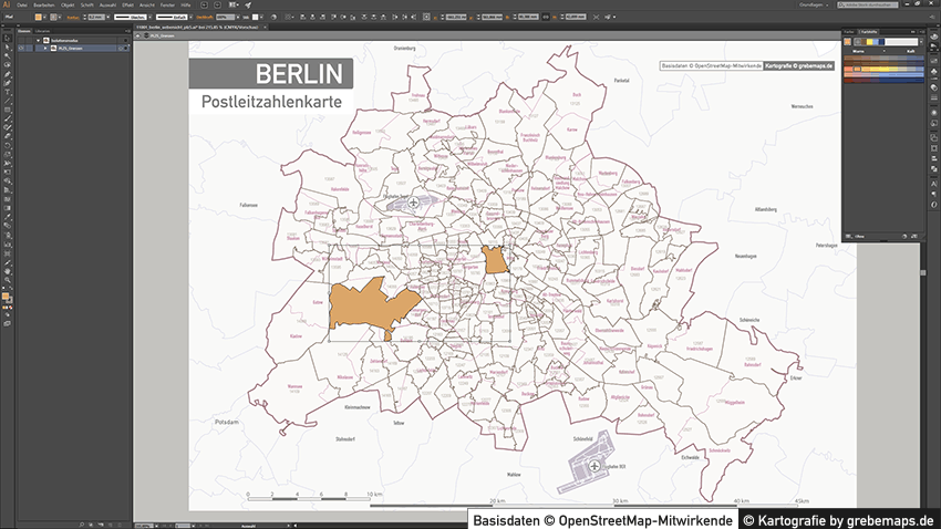 Postleitzahlenkarte Vektor für Berlin oder andere Städte / Regionen für Illustrator als Vektorgrafik
