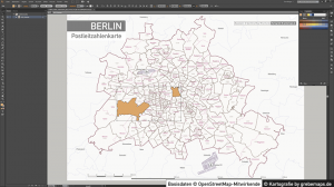 Die Screenshots zeigen Ihnen diverse mögliche Ansichten der Karte „Postleitzahlenkarte Berlin„. Über das Ein- und Ausblenden von Ebenen sowie deren grafischen Manipulation können Sie den Karteninhalt für Ihre Zwecke anpassen. Eigene Inhalte können Sie über eigene neue Ebenen hinzufügen.