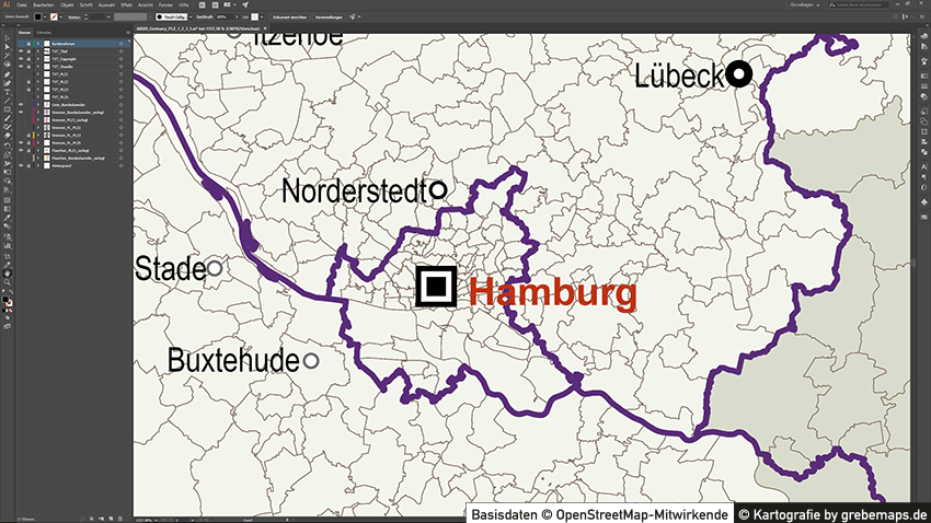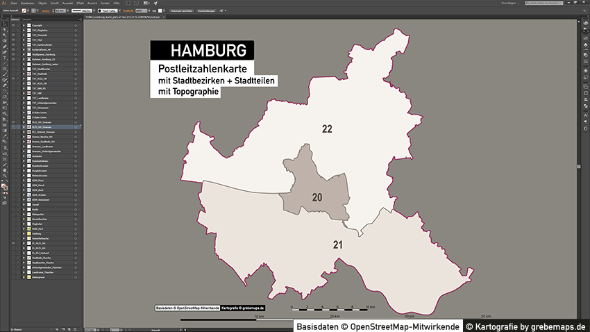 Postleitzahlenkarte Vektor für Hamburg oder andere Städte / Regionen für Illustrator als Vektorgrafik