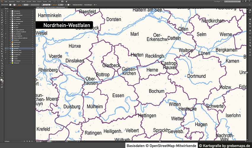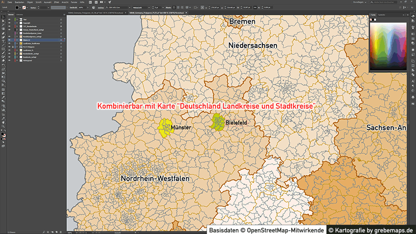Die Karten sind u.a. für folgende Landkreise als AI-Datei aufbereitet verfügbar: Landkreis Soest, Stadtkreis Hamm, Landkreis Kleve, Landkreis Wesel, … weitere folgen …
