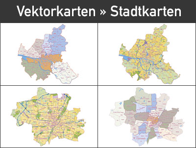 Vektorkarten / Stadt-Karten / Deutschland-Karte / Europa-Karte / Welt-Karten für Print, Druck, Flyer, Homepage, WebSite, Internet