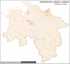 Niedersachsen / Bremen / Hamburg Vektorkarte Landkreise Gemeinden PLZ-5, PLZ-Karte Niedersachsen, Karte Gemeinden Niedersachsen, Karte Landkreise Niedersachsen, Vektorkarte Niedersachsen