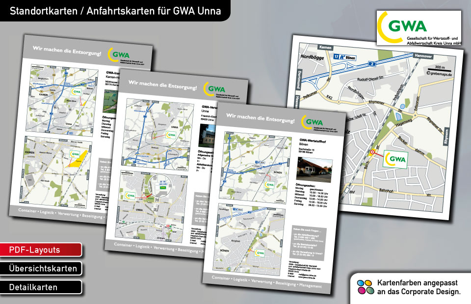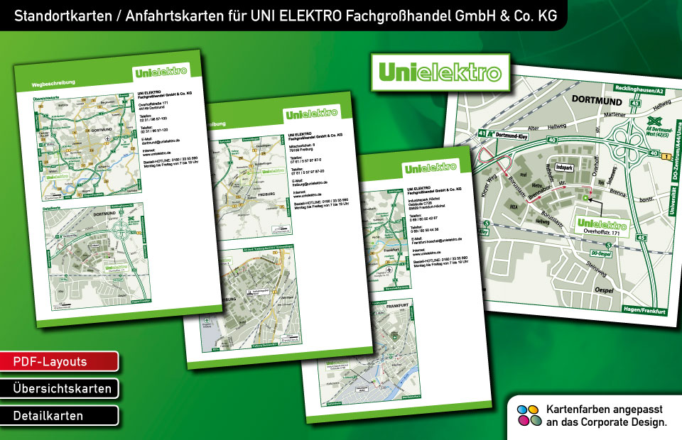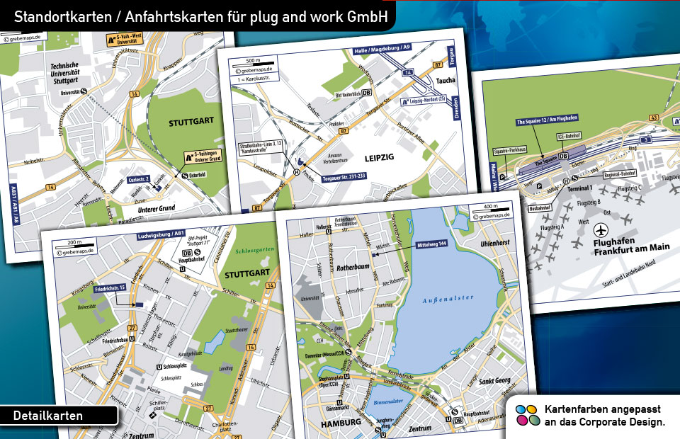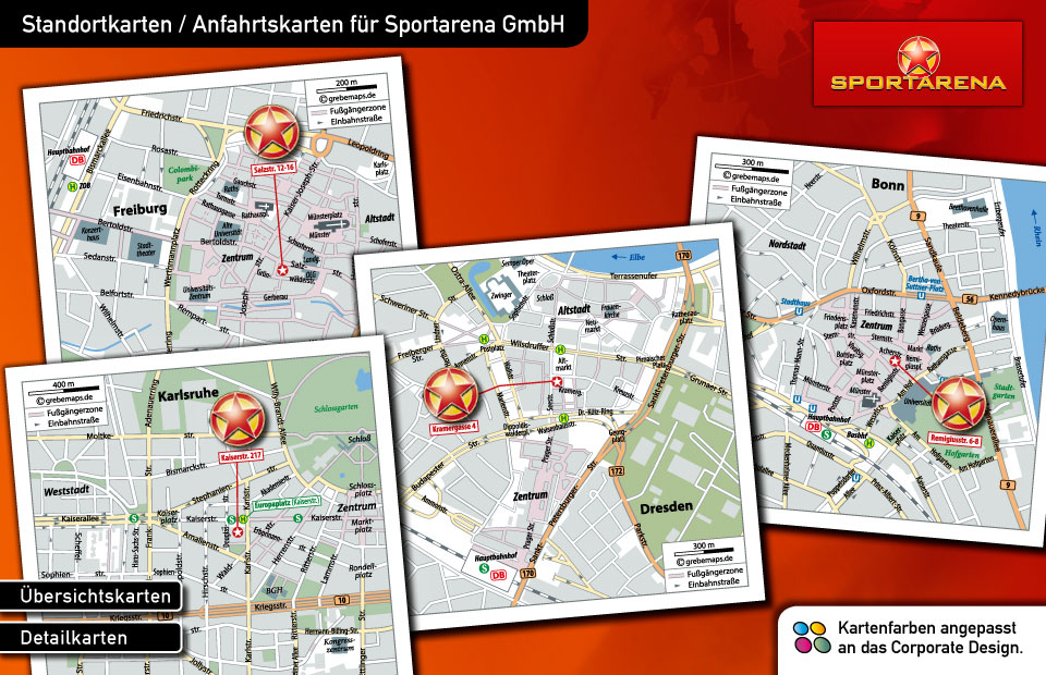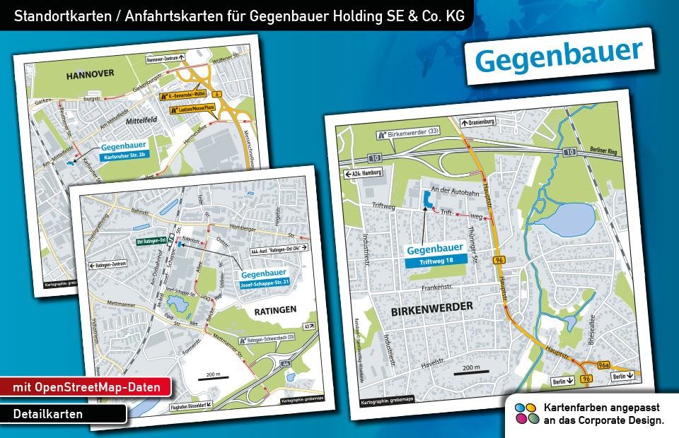 Die Kartenbeispiele zeigen Ihnen die hochwertige Qualität der von Diplom-Geograph Ulrich Grebe individuell erstellten Standortkarten / Anfahrtskarten. Überzeugen Sie sich von der Kartenqualität und präsentieren auch Sie Ihren Standort mit einer grebemaps-Karte! Sie erhalten exzellente Qualität zum fairen Preis.