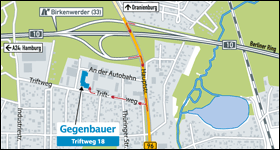 Anfahrtskizze erstellen / Anfahrtsplan erstellen / Wegbeschreibung erstellen / Straßenkarte estellen / Lageplan erstellen / Anfahrtskarte erstellen / Standortkarte erstellen für Print, Druck, Flyer, Broschüre, Prospekt, Web, Internet, Homepage, WebSite, Immobilien-Standort
